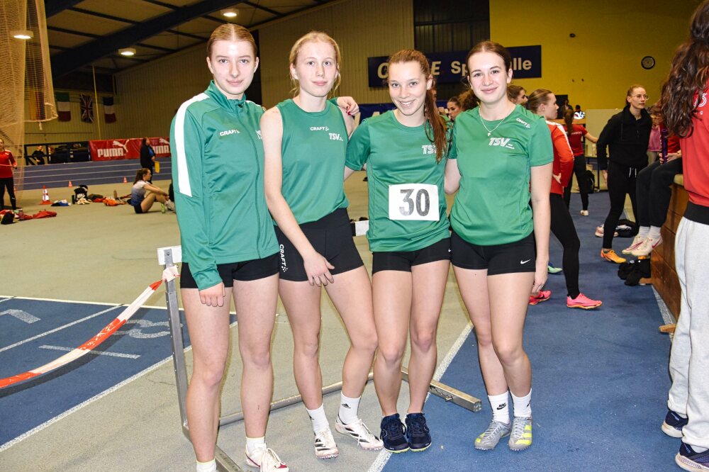 Als einziger Verein aus unserer Region konnten die U18-Mädels des TSV Ansbach mit einer 2×200 m-Staffel antreten und belegten mit Emma Dittrich, Anna Wenk, Anna-Lena Zolles und Leni Hecht nach 2:00,10 min Rang Vier.