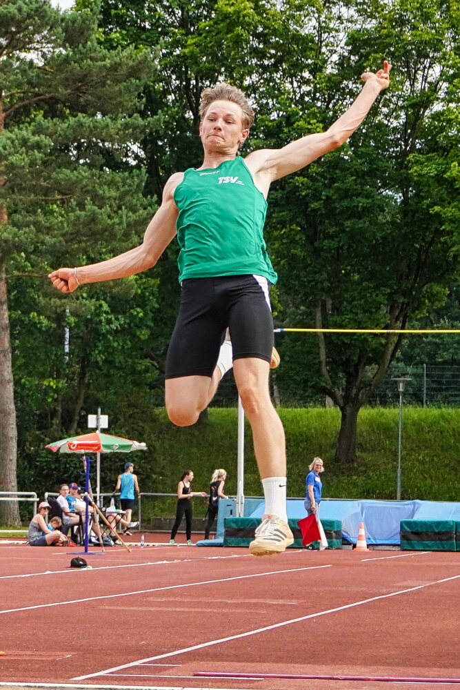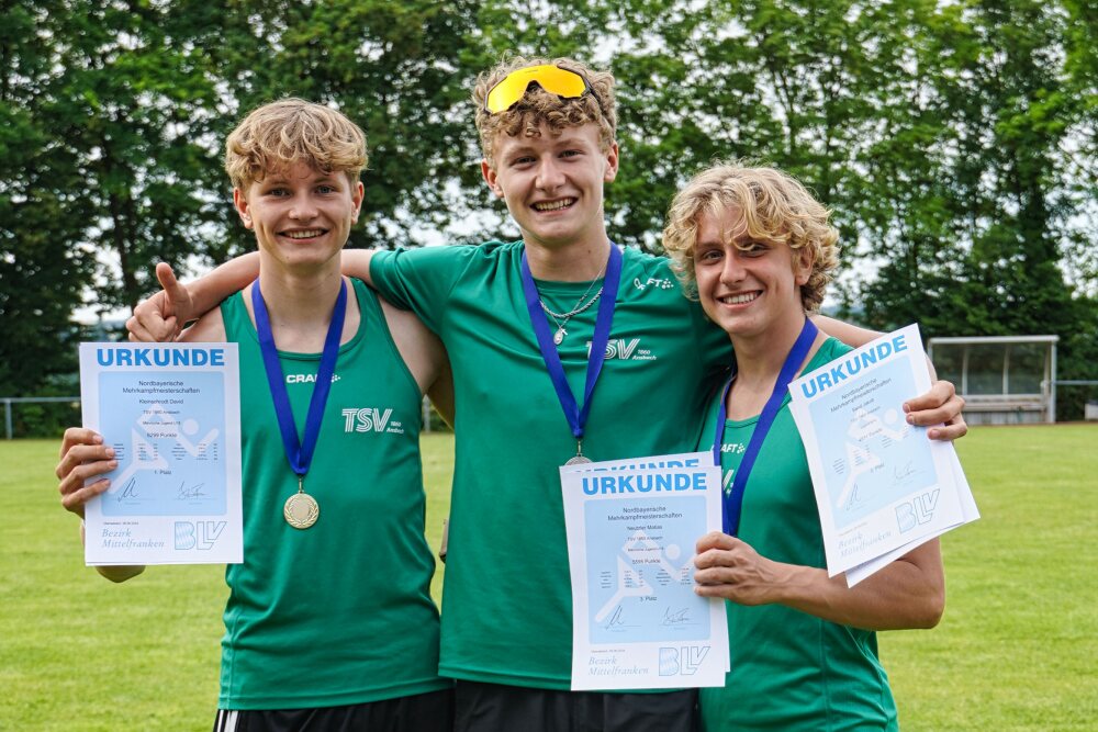 Der 17-jährige David Kleinschrodt holte gleich vier Goldmedaillen: jeweils im Fünf- und Zehnkampf den mittelfränkischen und nordbayerischen Titel in der U18. Herausragende 6299 Punkte im Zehnkampf und ein starker erster Tag für die Fünfkampfwertung mit 3.513 Punkten bringen Kleinschrodt auf Rang eins der Bayerischen Bestenliste und übertreffen die Norm zur Deutschen Zehnkampfmeisterschaft Ende August um fast 500 Punkte.
