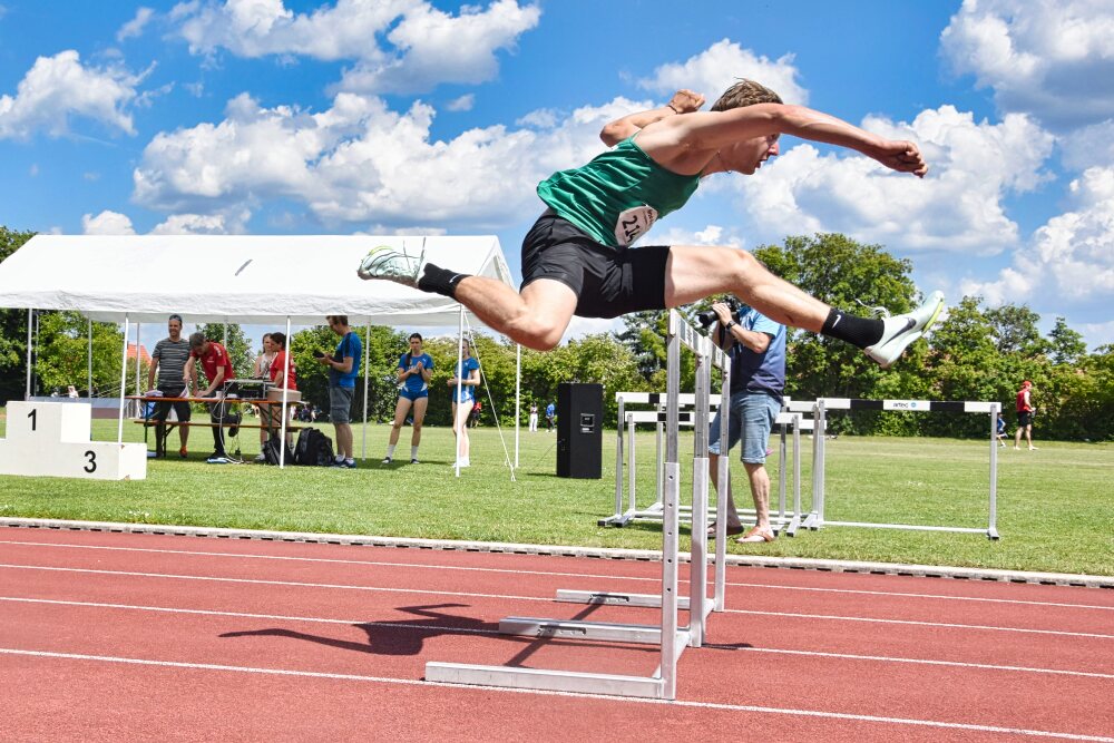 Sechs Vereine aus Westmittelfranken waren vertreten und sammelten 13 Titel. Sechs Titel gingen an den TSV Ansbach, vier an den TSV Burghaslach, jeweils einer an den TuS Feuchtwangen, den TV Leutershausen und den TSV Ipsheim. Sehr gut aufgelegt zeigte sich der Zehnkämpfer Filip Hofmann (TSV Ansbach) und konnte sich gleich zwei Titel sichern. Deutlich stabiler als beim letzten Rennen in Ansbach präsentierte er sich über 110 Meter Hürden. Perfekt war das Rennen aber noch nicht. Die ersten beiden der zehn Hürden streifte er beim Überqueren leicht, das siebente Hindernis warf er komplett um. Mit 15,14 Sekunden sicherte er sich bei den Männern den Titel und verbesserte erneut seine persönliche Bestmarke. Die Norm für die deutschen Titelkämpfe von genau 15 Sekunden konnte er noch nicht unterbieten, die Bayern-Norm ist schon längst im Kasten. Den zweiten Titel erkämpfte er sich beim Diskuswurf, auch wenn ihm ein passendes Haftmittel für seine Wurfhand fehlte. Im vorletzten Versuch flog die Scheibe auf 37,85 Meter. Hofmann musste noch zittern, doch der weite Wurf des Erlanger Gabriel Beer im letzten Durchgang war dann doch 43 Zentimeter kürzer. Dazu kamen für Hofmann ein zweiter Platz beim Kugelstoß mit 11,47 m und ein fünfter Platz über 100 Meter in 11,72 Sekunden.