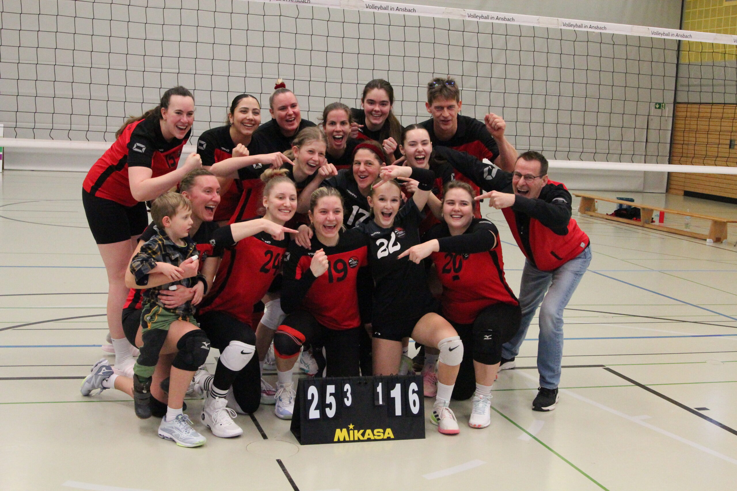 Gegen Zirndorf verliefen die ersten beiden Sätze voll nach Plan. Das Team um Headcoach Stephan Schröder setzte den Gegner bereits mit den Aufschlägen unter Druck, sodass dieser kaum zu einem geordneten Spielaufbau kam. Mit 25:18 und 25:14 war der Gastgeber die klar tonangebende Mannschaft. Hervorzuheben waren die platzierten Schmetterbälle von Nachwuchsspielerin Lara Baumann auf der Außenposition. Im dritten Satz ließ der Druck nach, die Gäste kamen besser ins Spiel und führten bis zum 17:17-Ausgleich. Aufschläge von Steffi Mertel brachten Ansbach mit 20:18 in Führung. Beim Stande von 24:22 hatte Ansbach zwei Matchbälle, die sie jedoch nicht verwandeln konnten. Ein Aufschlagfehler seitens der Ansbacherinnen bei 24:25 verhalf den Zirndorferinnen zum 26:24-Satzgewinn. Es hatte den Anschein, als ob Ansbach die Felle davonschwimmen sah. Man konnte jedoch einen 2:7-Rückstand im dritten Satz aufholen und bei 13:12 erstmals in Führung gehen. Bei diesem Spielstand kam Ansbachs Routinier Vera Marchegiani zum Aufschlag. Zehn Angaben in Serie brachten die Gäste nicht unter Kontrolle und Ansbach zog auf 24:15 davon. Der zweite von neun Matchbällen konnte zum 25:16-Spiegewinn verwandelt werden.